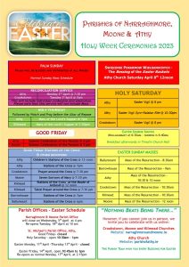 Holy Week and Easter Ceremonies Published on March 31, 2023 Here you will find a full list of Holy Week and Easter Ceremonies: You can download a printable flyer containing all the same information here.